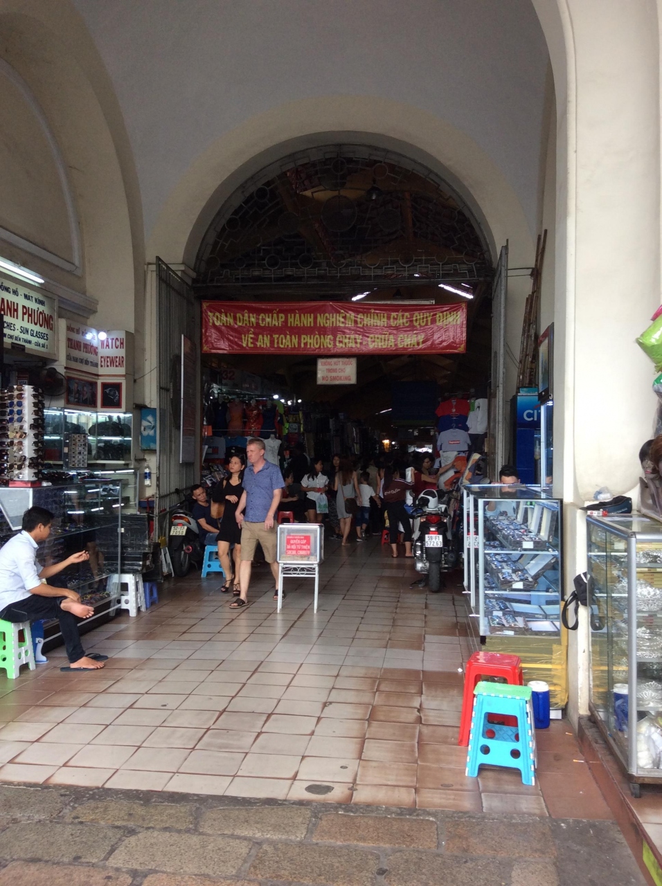 ドンコイ通り散策の途中に有る市場なので行きました。現地ガイドさんからは余り良い評判(評価)では有りませんが、各店舗の店員さんは明るい笑顔で売り込みしてきます。食料品は衛生上問題有りそうです、しかし衣類雑貨は安い様に思いますが、コピー商品(ヴィトン、GUCCI等)の多さにビックリしました。