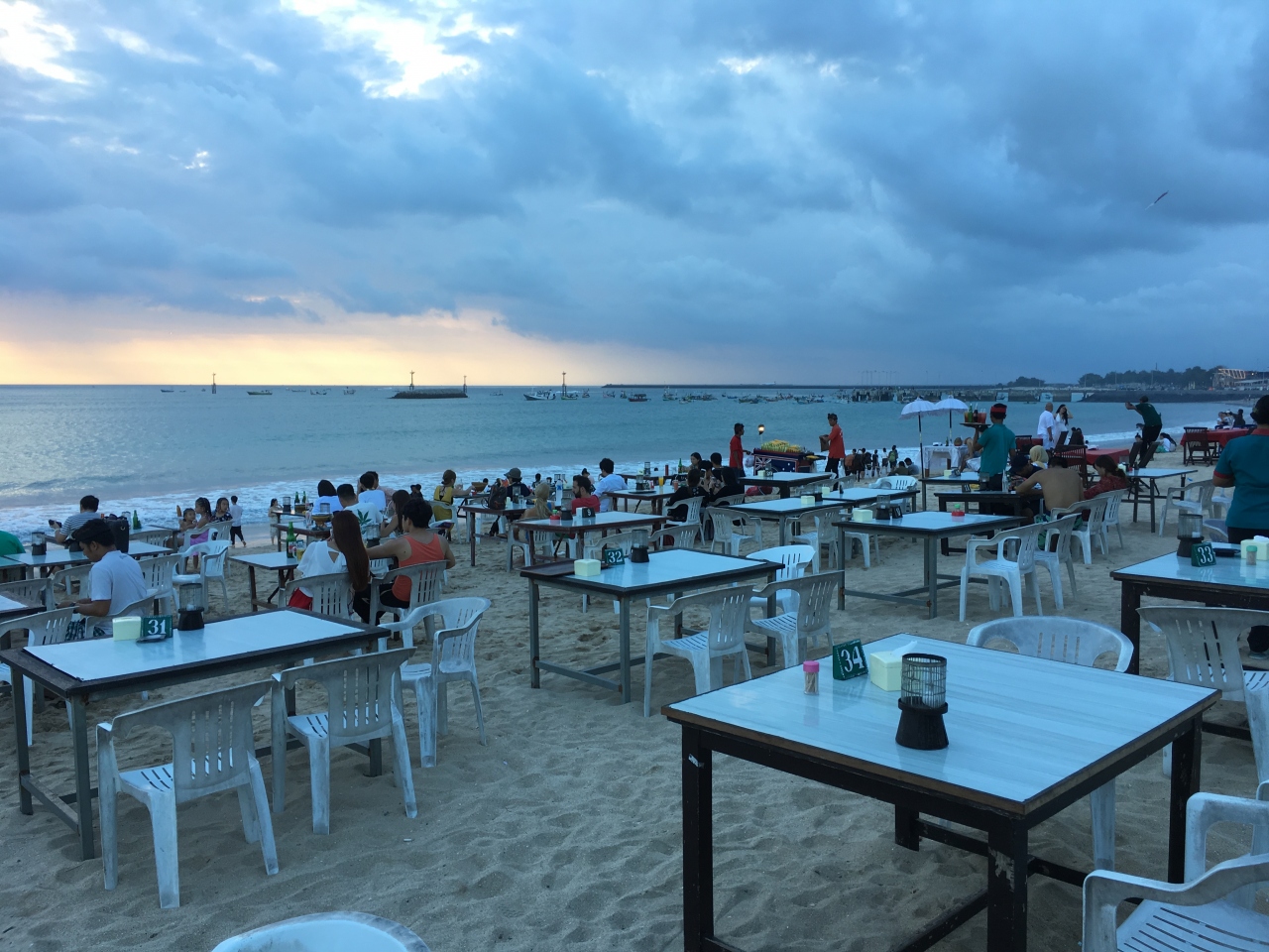ジンバランのシーフードカフェの一件。このエリアはどの店選んでも、ほとんど変わらないですね、雰囲気も値段も。