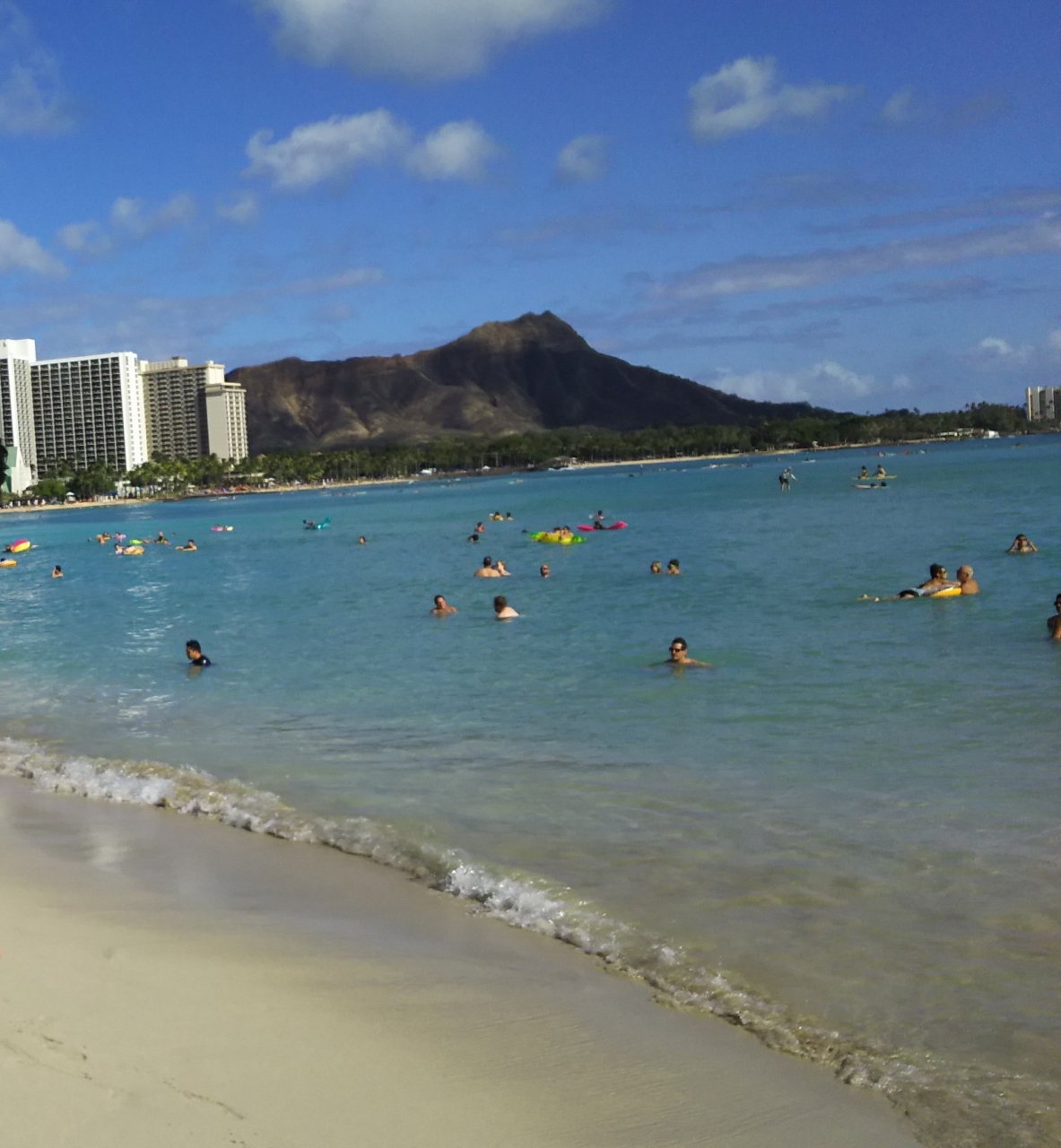 ワイキキの中心に面するビーチで各ホテルの目の前です。西側のシェラトン、ロイヤルハワイアン前は結構波が高く砂がまっており透明度はやや△。パシフィックビーチホテルなどの東側のクヒオビーチのほうが、防波堤で囲まれており、波も穏やかで透明度も高いです。魚も見ました。ホテルにすぐ戻れるのがよいですね。プールもすぐです。(シェラトンワイキキ、パシフィックビーチに宿泊)