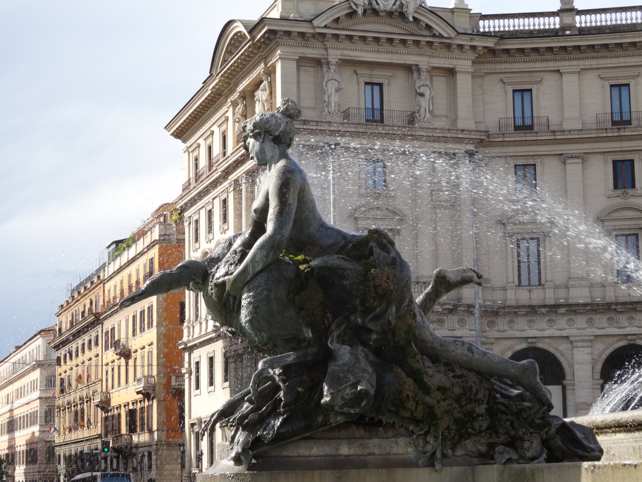 共和国広場の中心にある、とても大きな噴水です。一応噴水の外側をぐるっと回れるように歩道があるのですが、けっこう狭いです。テルミニ駅にも近く、車通りがとても多いので、写真を撮るのに、注意しないとけっこう危険です。
