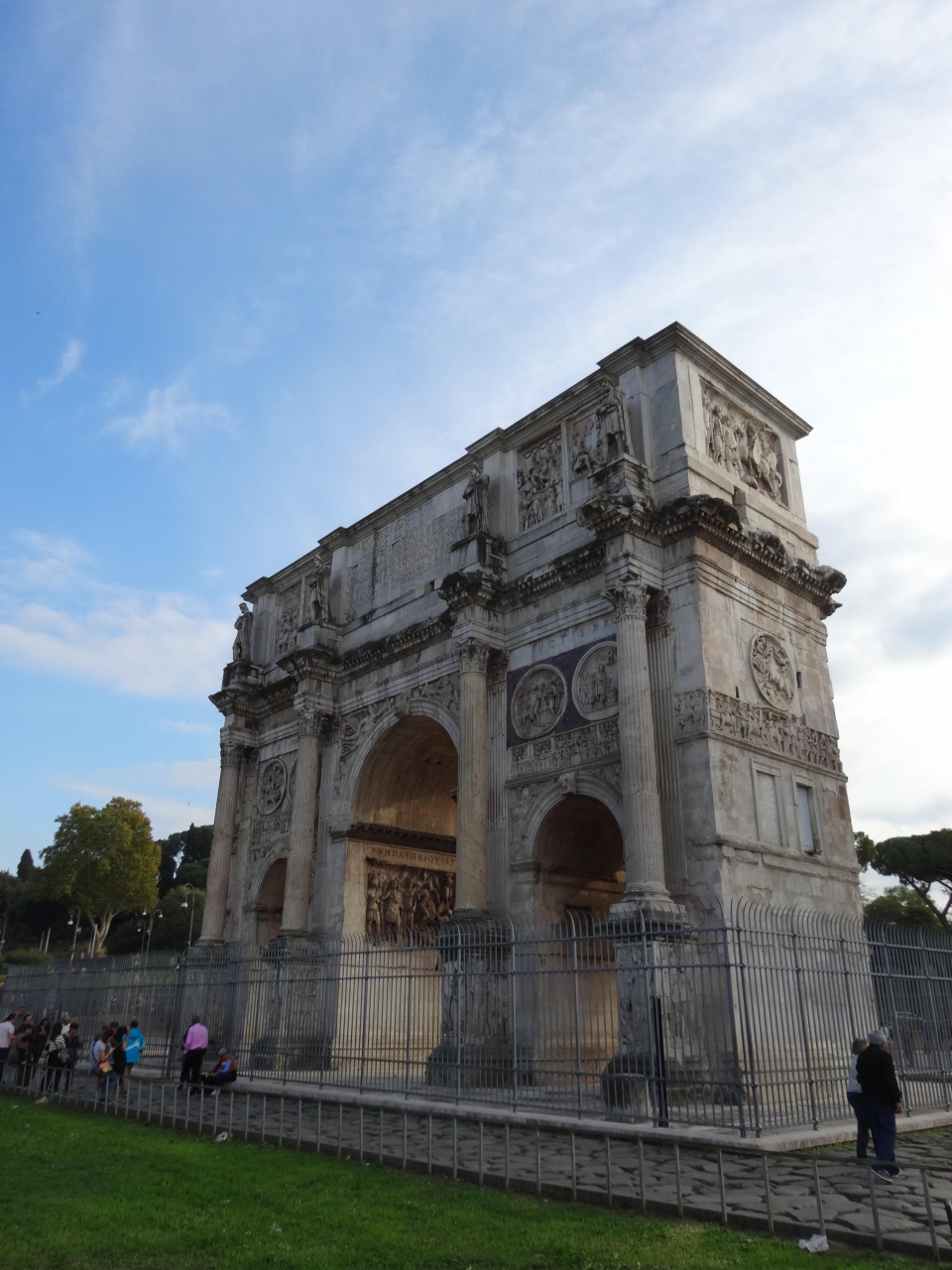 コロッセオの見学を終えてフォロ・ロマーノへ移動する際に見ました。古代の彫刻が今も残っていました。見た目の堂々としたさまと美しい彫刻がすごく目を引きます。柵で囲まれていて実際にくぐってみることができないのが残念でした。