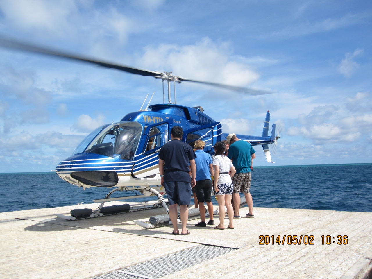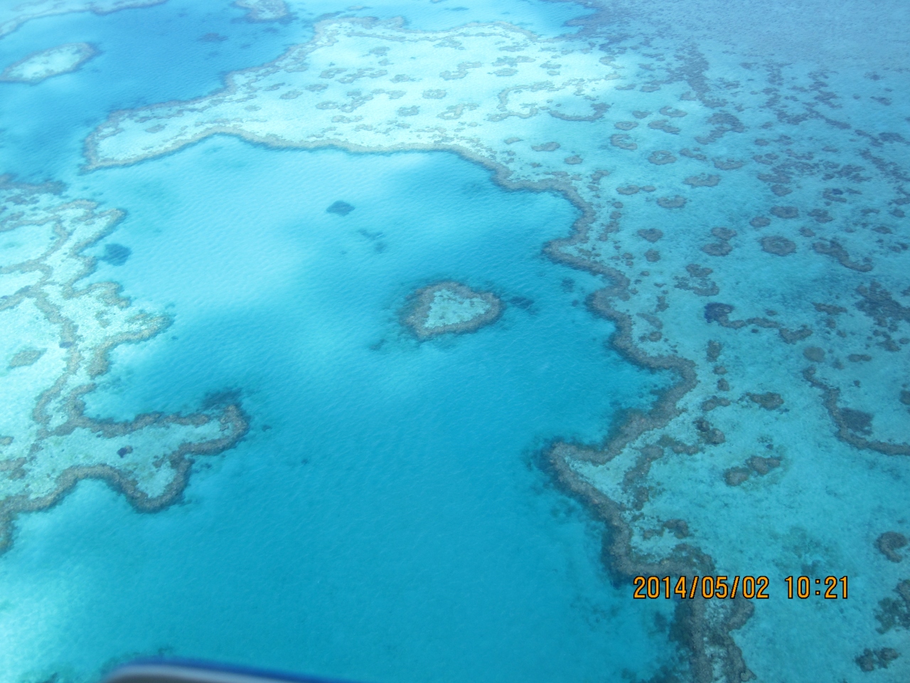 パイロットに聞いたら、我々は運が良かった。前日迄はずーっと雨続き、せっかくの予約も、飛行、リーフワールドのスノーケルも雨ではダメ。それが見事に晴れたから、空からグレートバリアーリーフ、ホワイトヘブンビーチ、ウイットサンデー島がハミルトン島を離陸したら拝める。