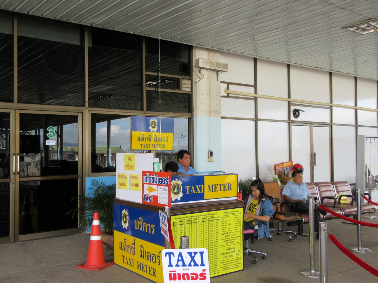 チェンライへはチェンマイからのバスで訪れていたので、空港を利用するなんて大変に久しぶりのことです。バゲージクレームでは北タイ音楽が演奏されていて、一気に北タイ旅行の気分が高まります。制限区域外に出れば、以前であれば各ホテルのボードをもったスタッフがずらりと並んでいて無料シャトルバスへと案内してくれていたのですが、現在はいなくなっていました。久々だったのでターミナル内をチェックしてみました。館内は木の温もりを生かした北タイデザインですが、各航空会社のチケットブースはポップですねぇ。飲食店もありますが、本格的に食事するようなレストランはありません。チェンライ市中心部へ行こうとタクシーカウンターで尋ねたら200THBとのことでしたので、メータータクシーのカウンターに行って乗車。「ル・メリディアン・チェンライリゾート」まで80THB弱でした。