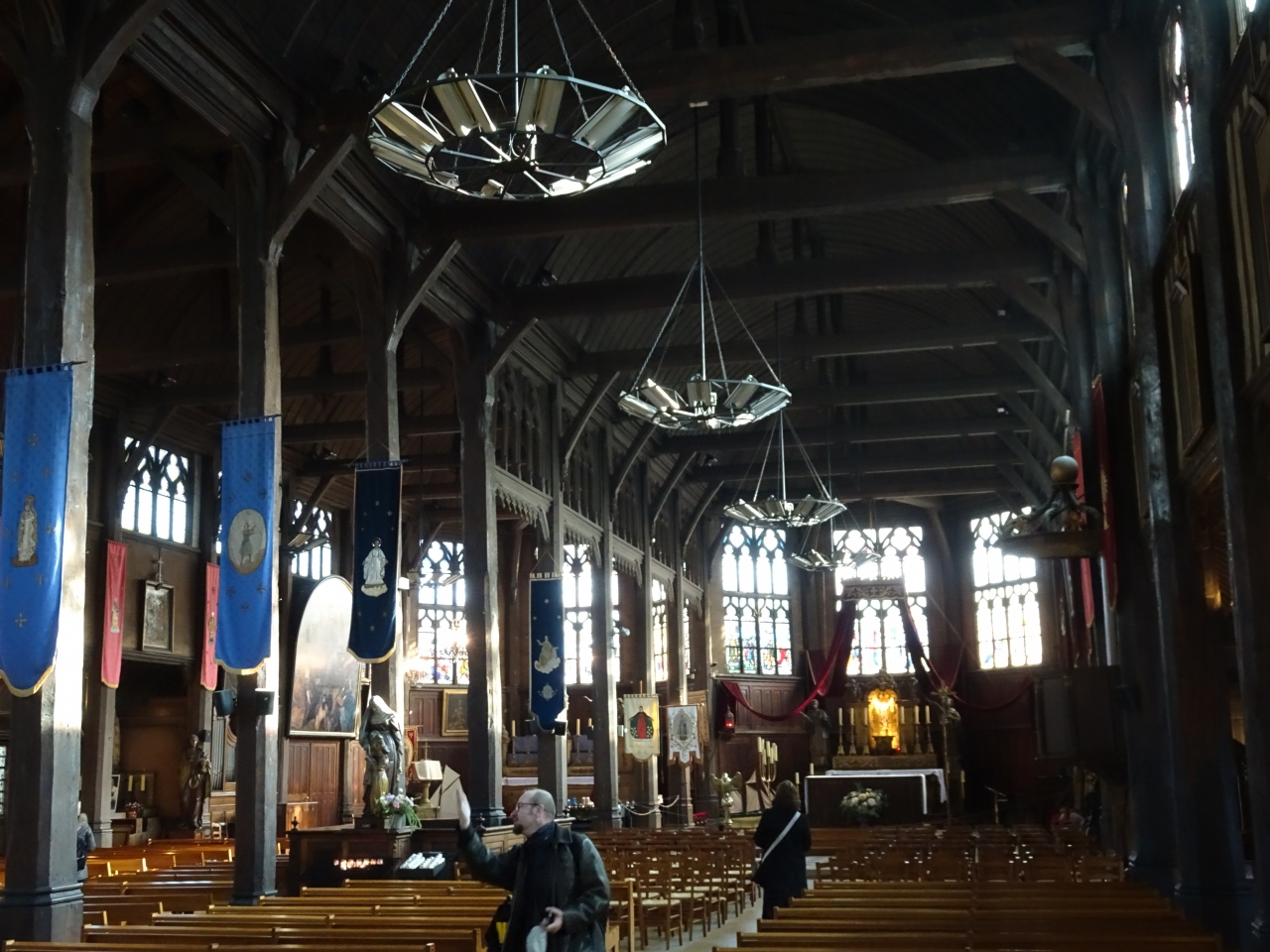 オンフルールの旧市街の中心にあるカトリックの教会です。かつて教会が戦争で焼けた時に、地元の船大工さんが船の材料を使って再建した事から木造になったそうです。石造りの教会とは少し違った趣きがあって良かったです。中も無料で入ることができました。