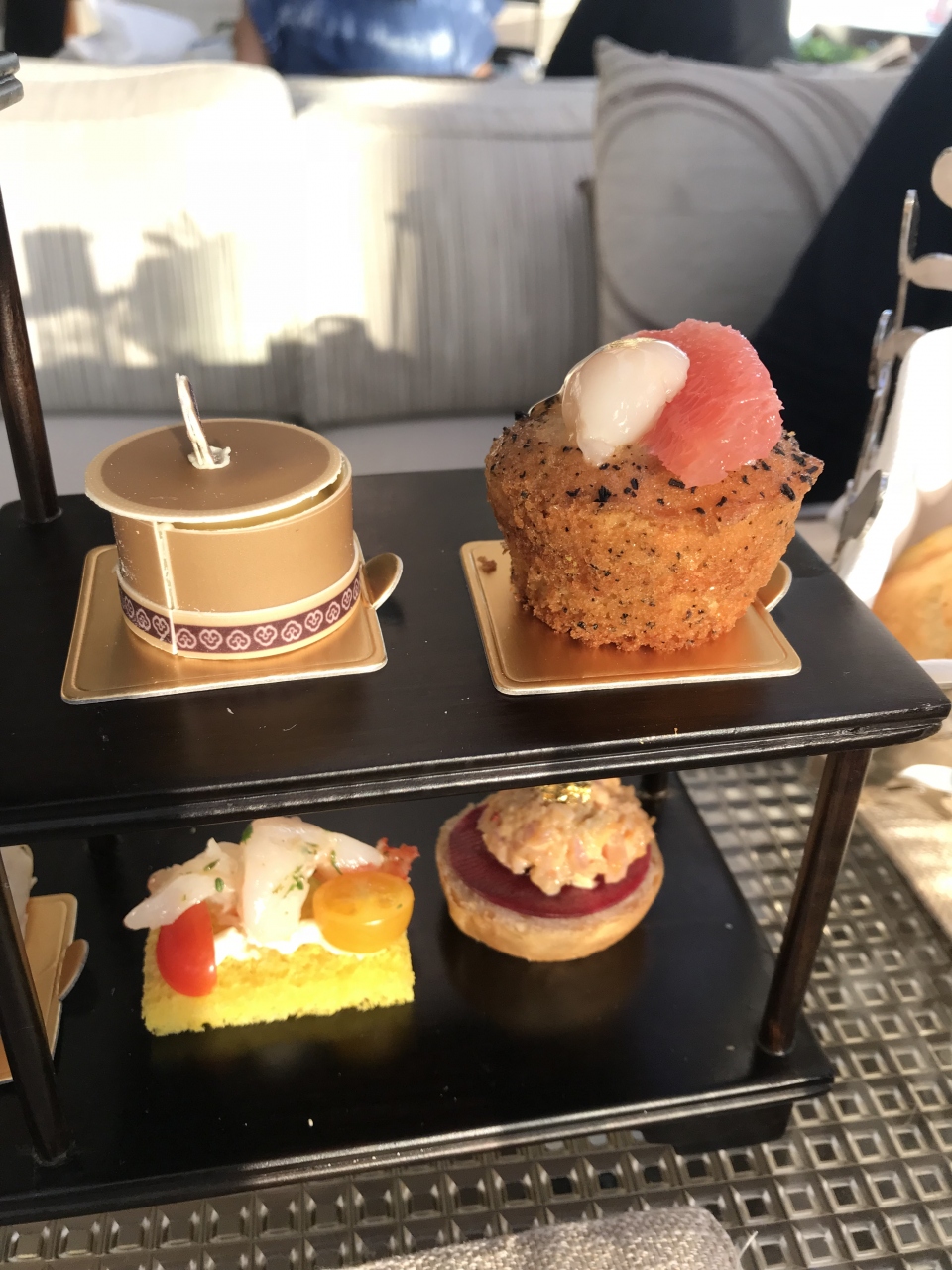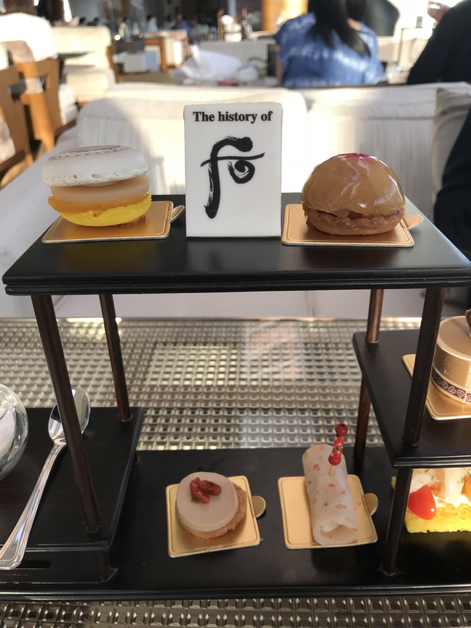 チャイニーズじゃない方のアフタヌーンティーセットを頼んだところ、どこか化粧品メーカーとコラボ中なのか、思いがけず試供品がいただけました。ラッキー!