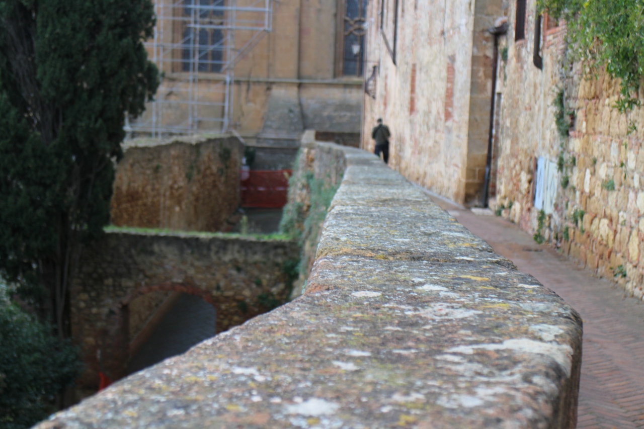 城壁に沿って歩いているとオルチャ渓谷の美しい田園風景を眺められます