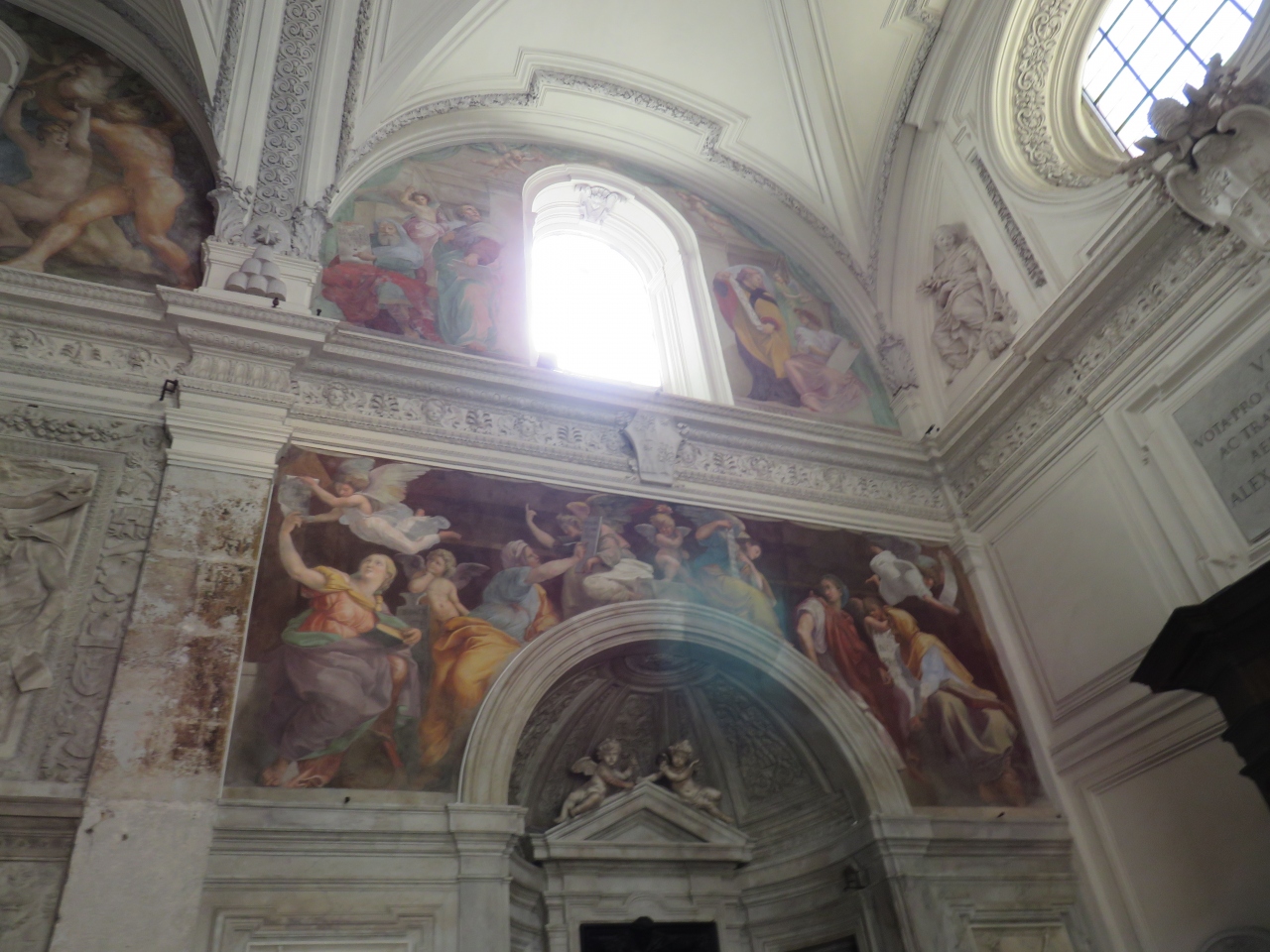 教会内部の右側の礼拝堂のアーチにはラファエロが1514年に銀行家アゴスティーノ・キージの為に描いたフレスコ画「巫女」があります。フレスコ画「巫女」の上に4人の預言者は、ラファエロの下絵を基に描かれたもののようです。教会内を観覧できるのは月曜、水曜、土曜の週3日のみで、しかも午前中だけなので計画的に訪れる事を勧めます。