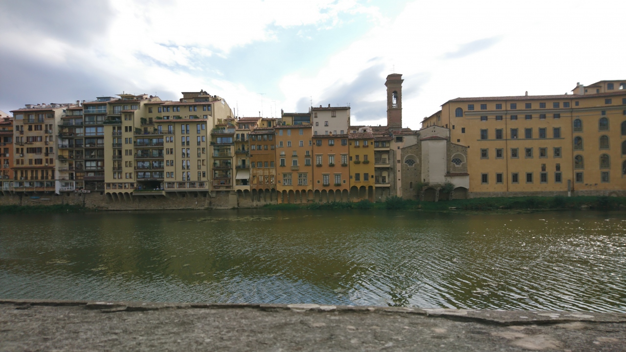 ミケランジェロ広場からの帰り道にこのアルノ川沿いを歩きました。川辺の建物なども古く趣があり素敵です。まさに歴史のあるフィレンツェに来たことを感じさせる風景です。ヴェッキオ橋の辺りは観光客で込み合っていますが、川沿いを少し歩けば人も減り、ゆったり景色を眺められます。