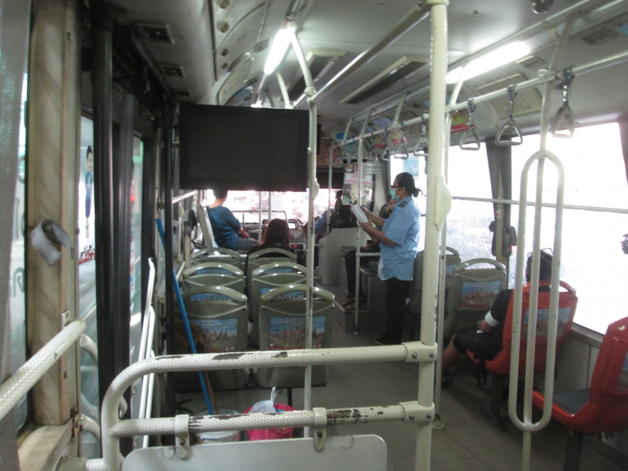 アソーク駅付近からワットポーまでエアコンバス48番を利用しました。アソーク駅付近から48番と508番のバスが全く同じコースで運行しています。おそらく、運行している会社が違うのか、この48番の方が2バーツ高く17バーツの運賃でした。いずれにしても安い移動手段だと思います。
