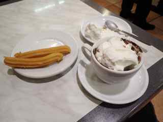 いつも思いますが、スペインのスイーツは甘いのにチュロスのホットチョコレートは甘くないので、個人的にはもう少し甘い方が好きです。