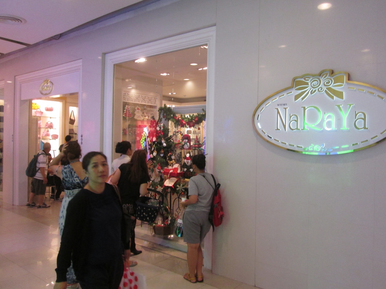 11月からナラヤ (セントラルワールド店)ではクリスマス期間限定商品の販売を開始したようです。かわいらしいデザインのバッグ、小物入れを見かけました。タイでは国葬が終了し、さらに中国人観光客が増えた印象を受け、店内が混雑していました。