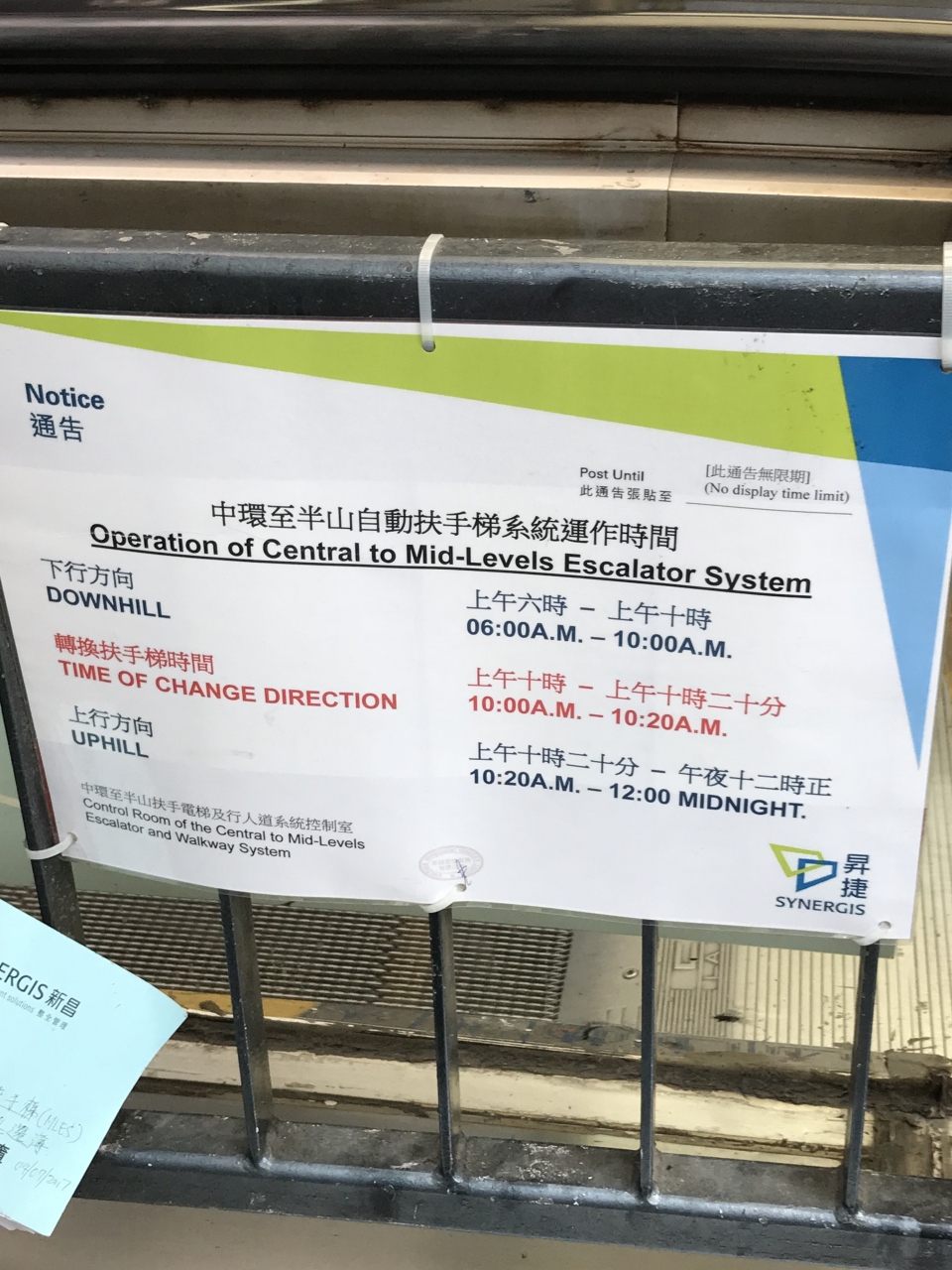 エスカレーターは、24時間運行されていますが、時間帯によって、上りと下りが変更になります。