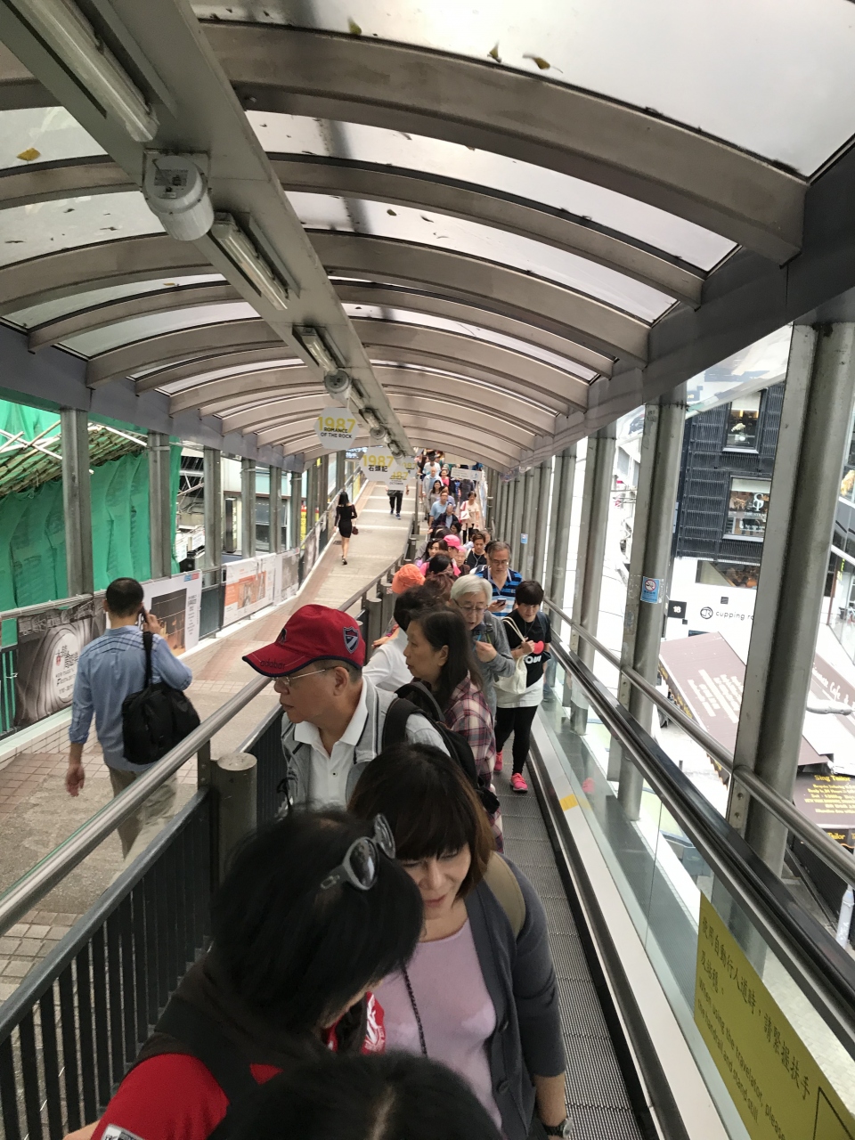 エスカレーターの下では、上りに変更になる人達で、いっぱいになっていました。