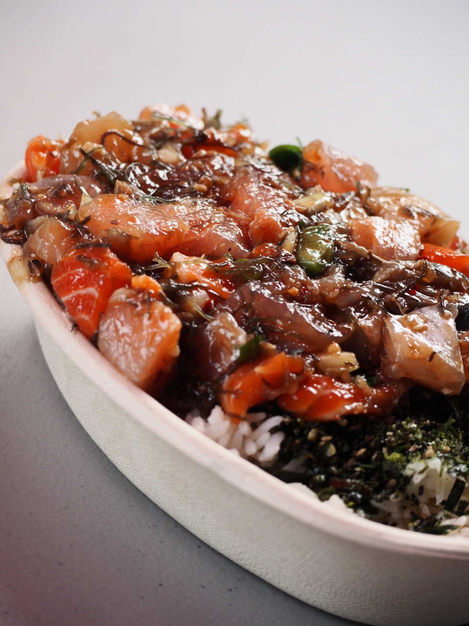 ポケ丼はどこのスーパーでも持ち帰り用で買えますが、新鮮なポケ丼を食べたくて、スイサンフィッシュマーケットに行きました。