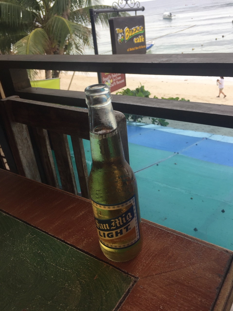 サンミゲルライト70pesoを、、、波の音が心地いいです。WiFiもまあまあ繋がりますよ(^ ^)