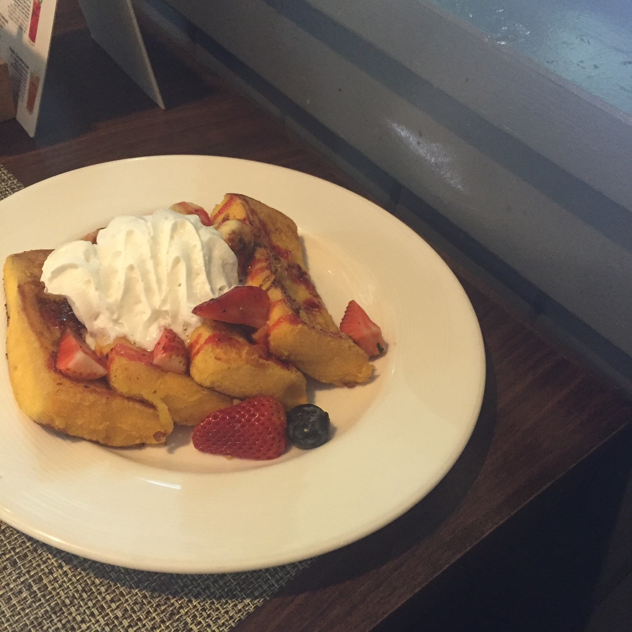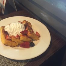 25分くらい、汗流しながら歩いたのにガッカリです。エッグペネディクトとフレンチトーストしかないと言われ、せっかく来たのでオーダー。ごめんなさい、口に合わなかったです。