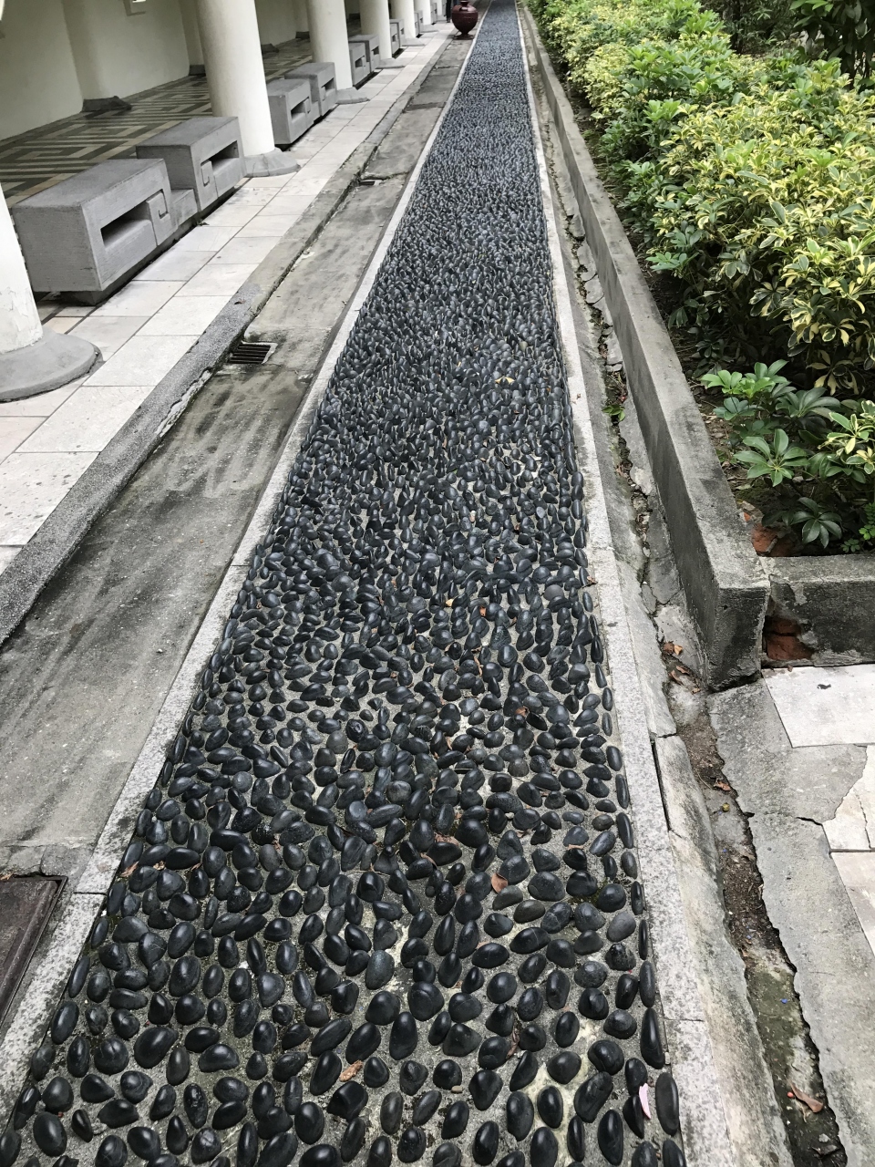 この大孝門から入って左手に長さ約100メートルの健康歩道(足つぼロード)があります。TVで何度か見ていたので行ってみました。立ち寄っていたのは日本人ばかりでしたがみな口々に「痛い痛い」と、腰が引けた状態で歩いていました。もちろん私も歩きましたが数歩でギブアップ(^-^; 痛くて歩けません。