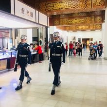 11月17日現在、衛兵交代が行われる建物は工事中でした。一階から入ります。びっくりしたのが、衛兵さんはエレベーターで上に上がるので、5分前に一階で待ち構えるのも手です。1時間ごとに衛兵交代があるので、見逃してもすぐ近くにある盛園絲瓜小籠湯包や杭州小籠湯包でお食事をしたら時間を潰せます。