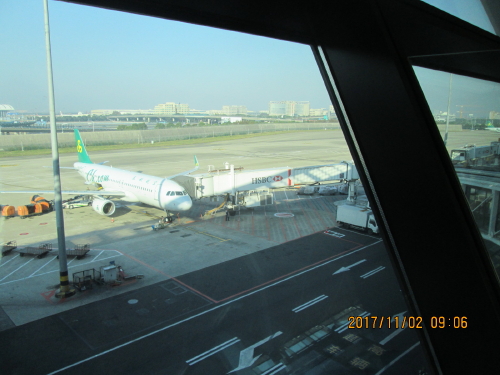 浦東空港は中国人の海外旅行ブームで大混雑、現在第3ターミナルと第4、だい5滑走路を工事中、何時完成するか不明。その為、空港の隅まで飛行機が地上を20分程走り、そこからバスに乗り換え20分程掛かってターミナルに到着します。入国手続きに行列を並