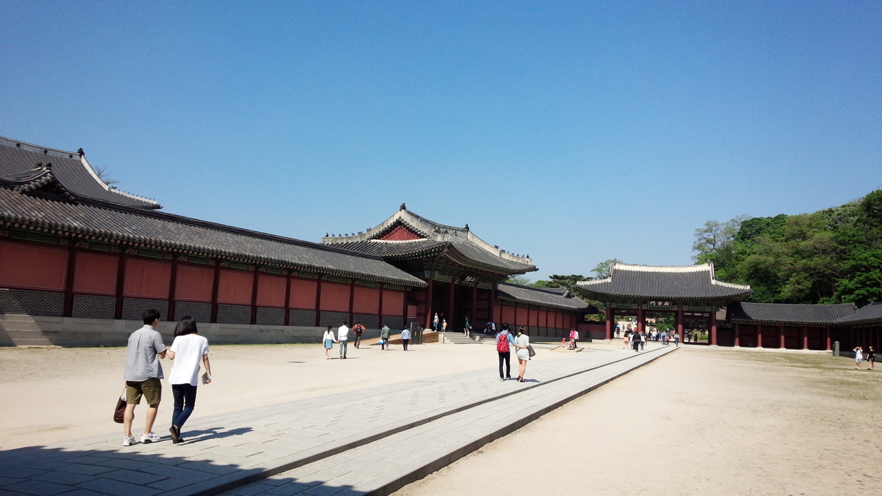 昌徳宮の敦化門の先の橋を通って次の2番目に出てくる門ですが、門がこの後も仁政門、粛章門と門がいっぱい出てきてわからなくなりそうです。この門の太鼓をたたくと王が話しを聞いてくれたそうですが、普通その前の門でとめられてしまいますよね。門の前の松がいい雰囲気を出してました。