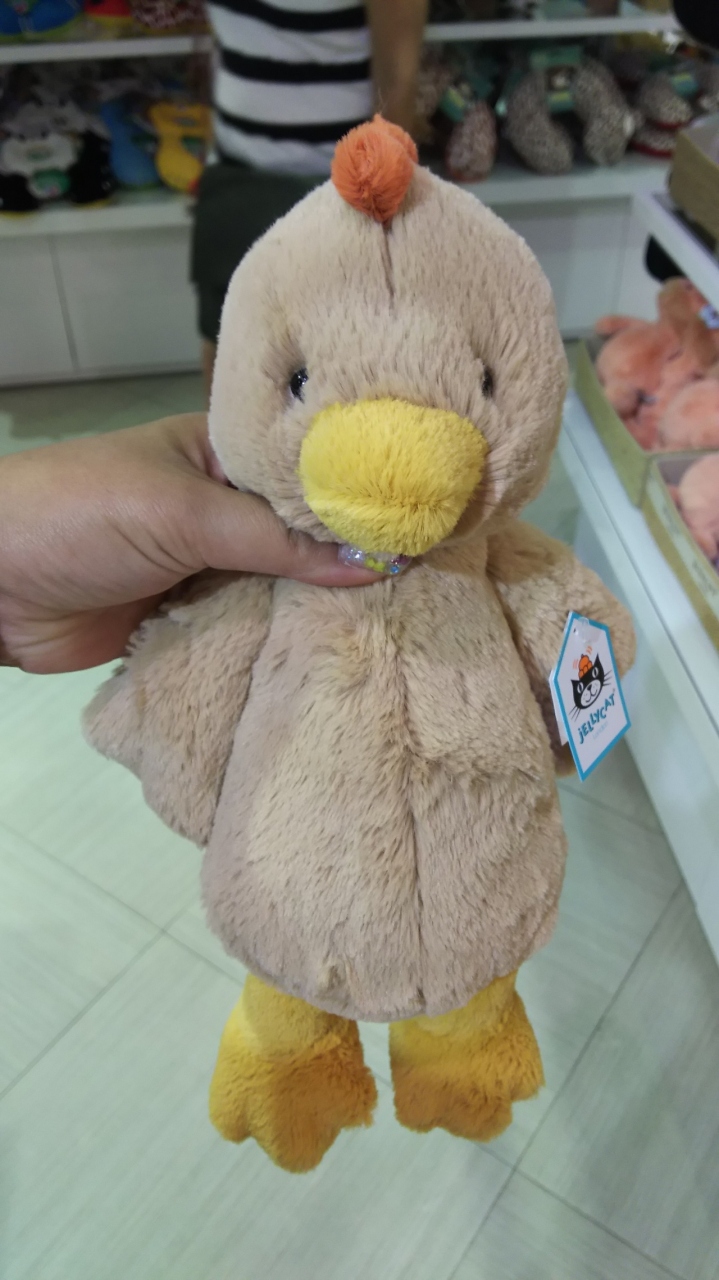 手触りがよくて癒し系の顔がお気にいりのぬいぐるみ。にわとりさんを購入。