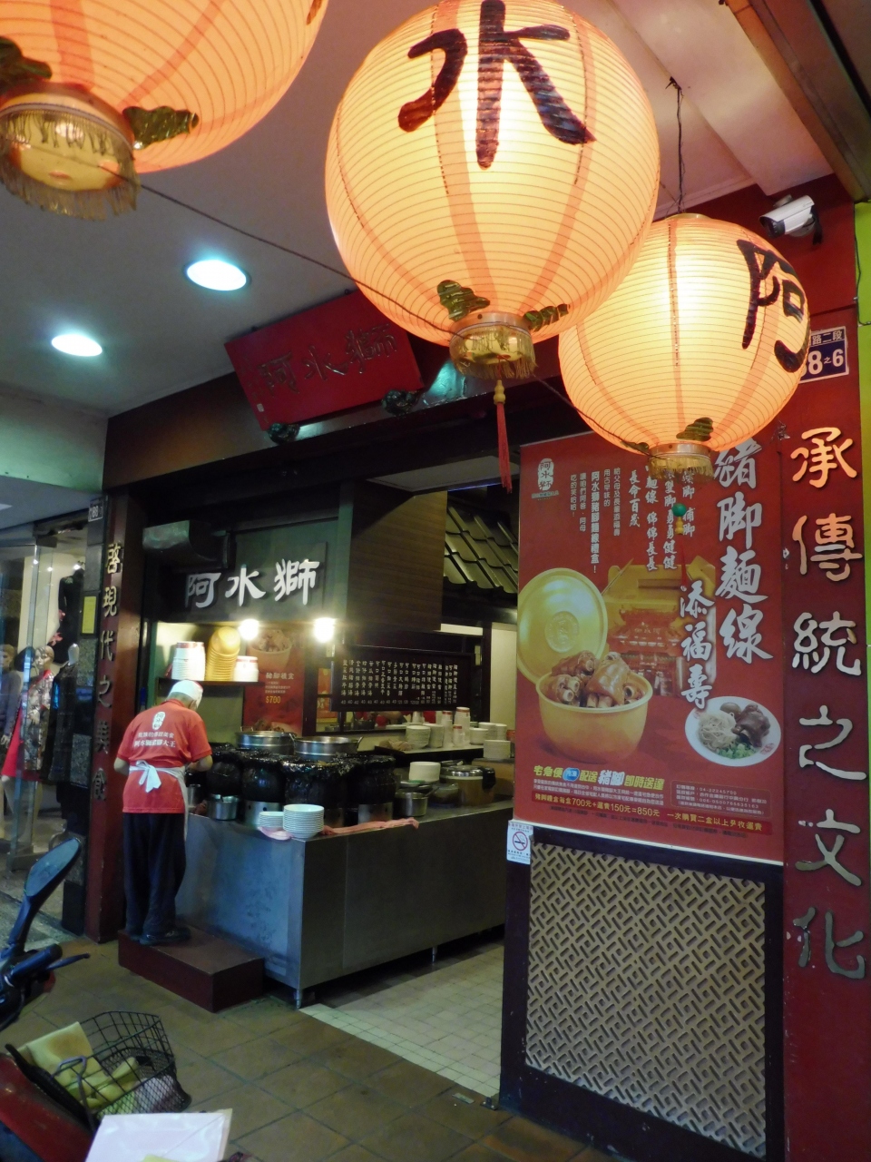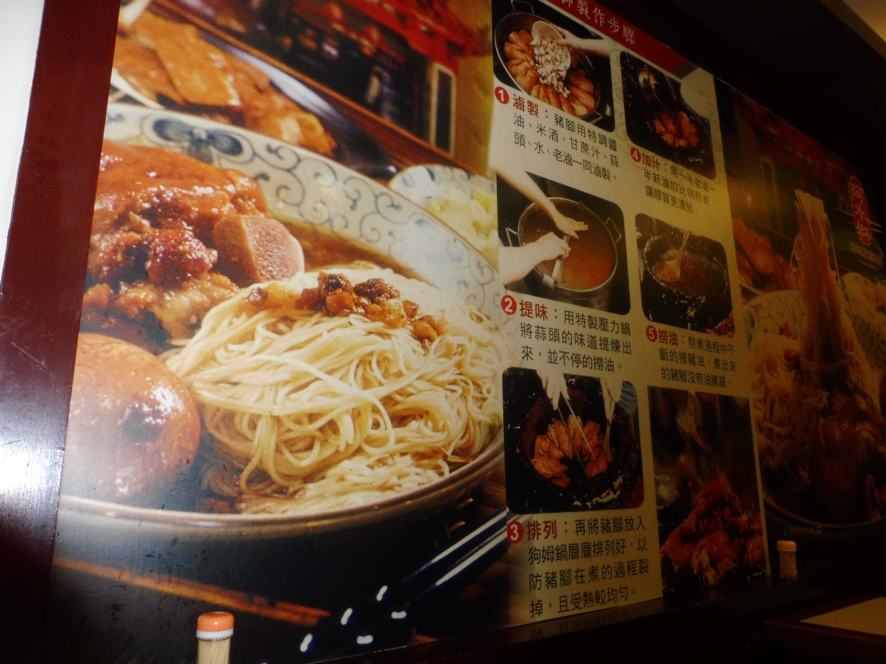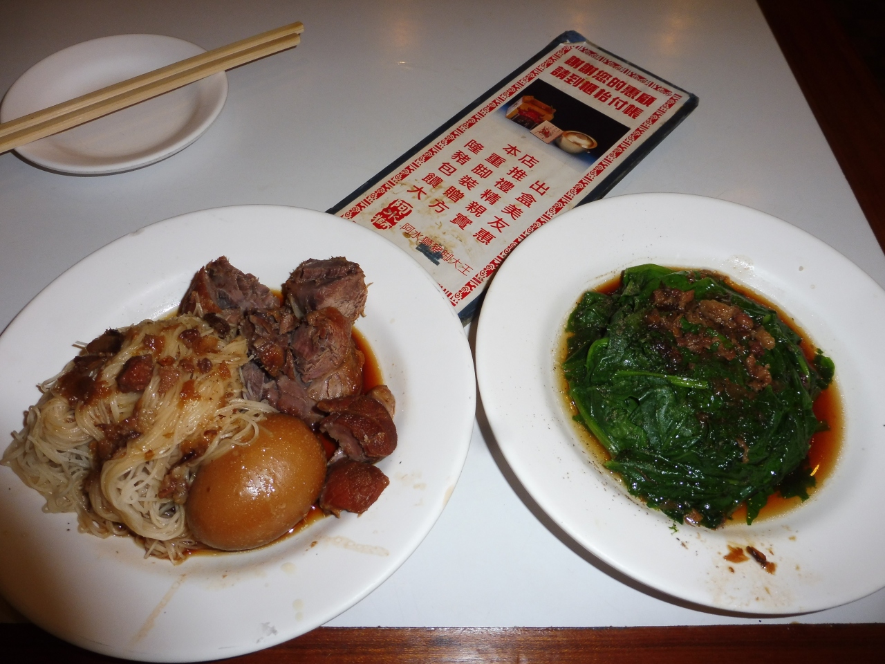 有名な豚足と麺線を注文、青菜炒め(40元)も野菜不足のためにオーダー、
