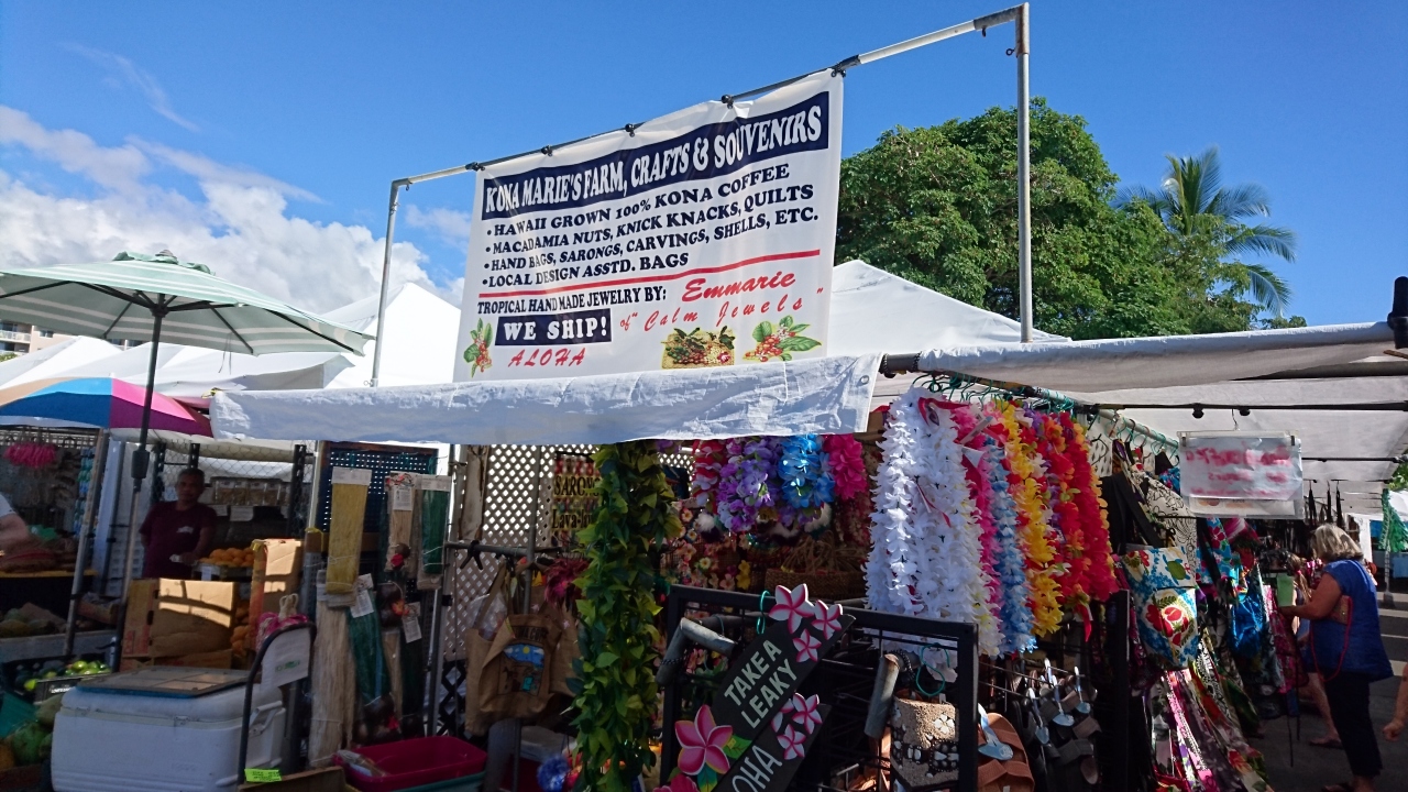 コナファーマーズマーケットは白いテントにいろんなお店が連なっている感じでした。