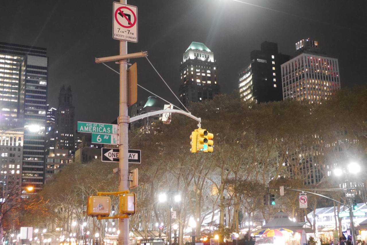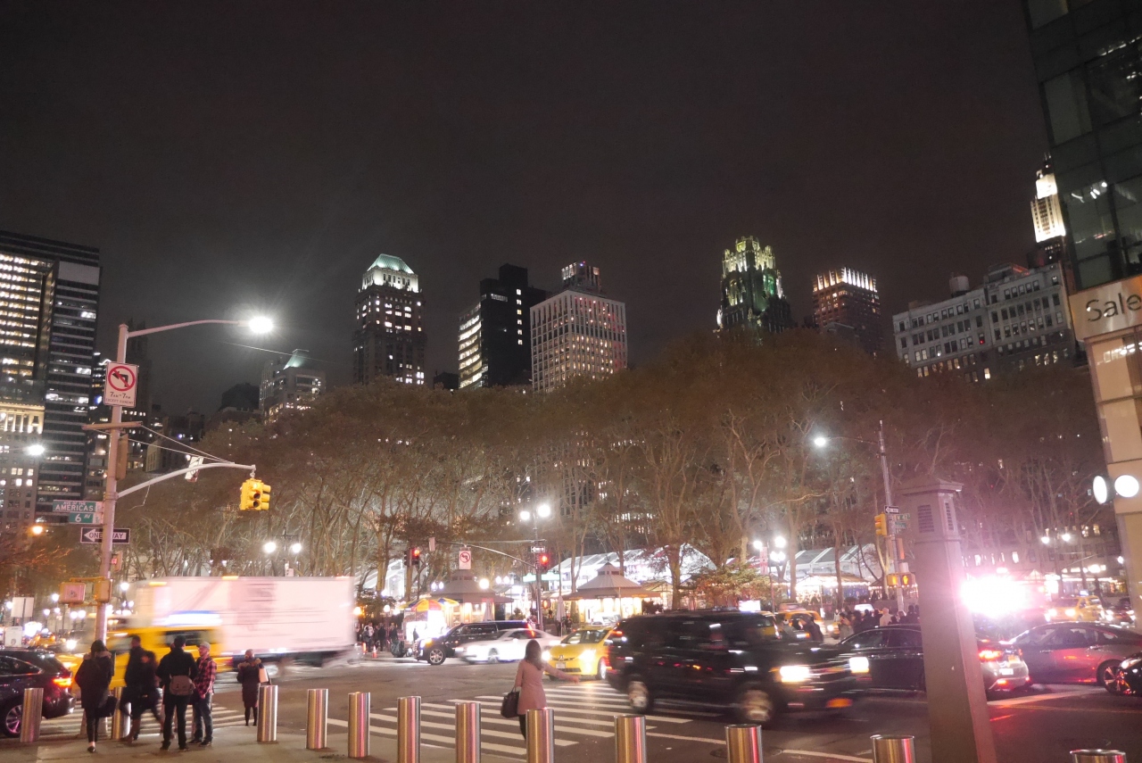 タイムズスクエアから歩いて5番街に向かう途中にある公園です。夜10時過ぎていましたが、周辺は人通りも多く、公園内は明るく照明されていました。でも各所にある入口は既にクローズしていました。