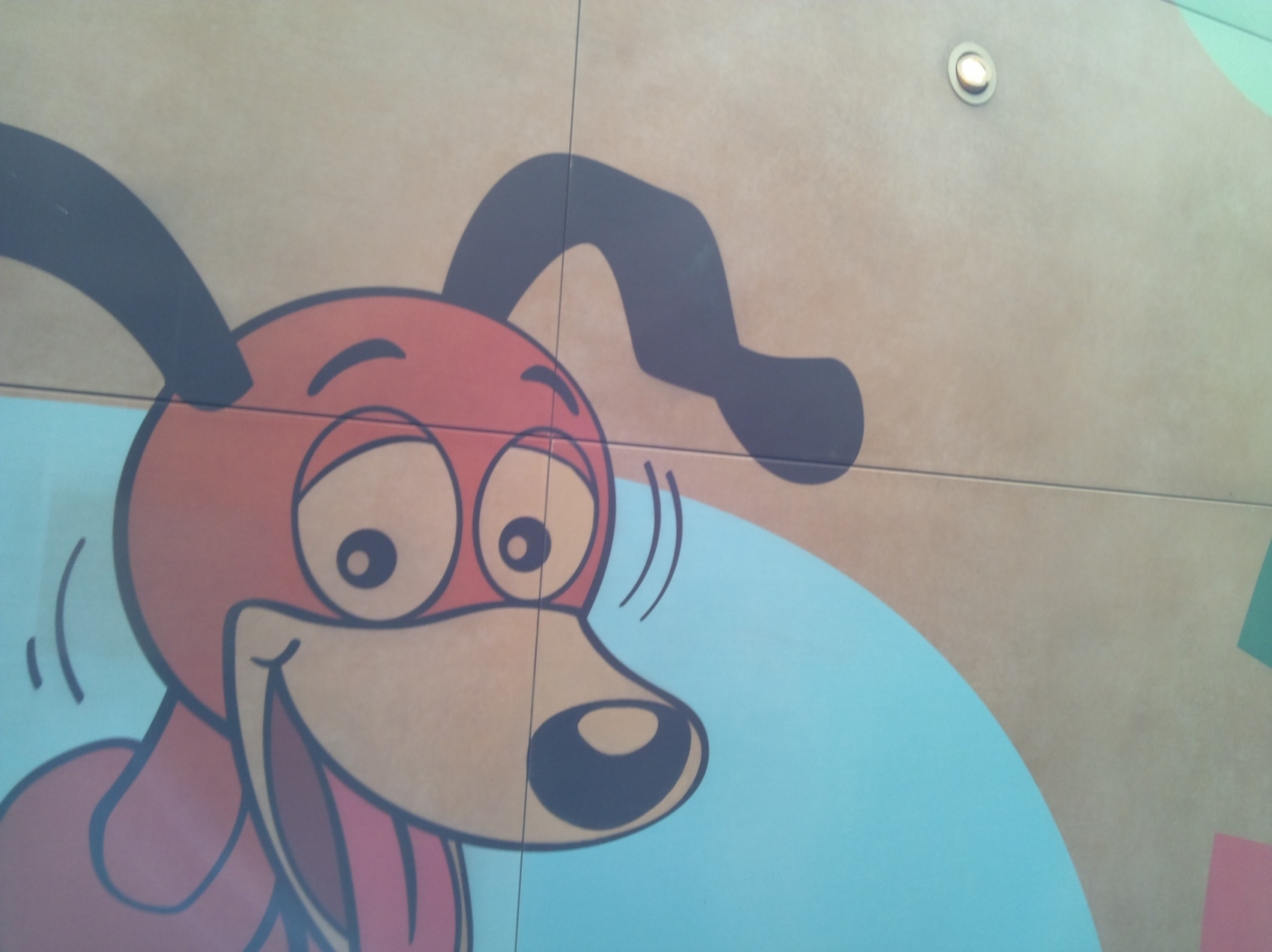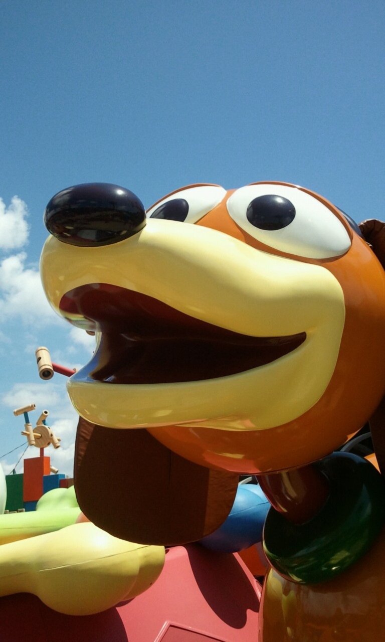 アトラクションの待ち時間に上を見上げるとスリンキーのイラストが!