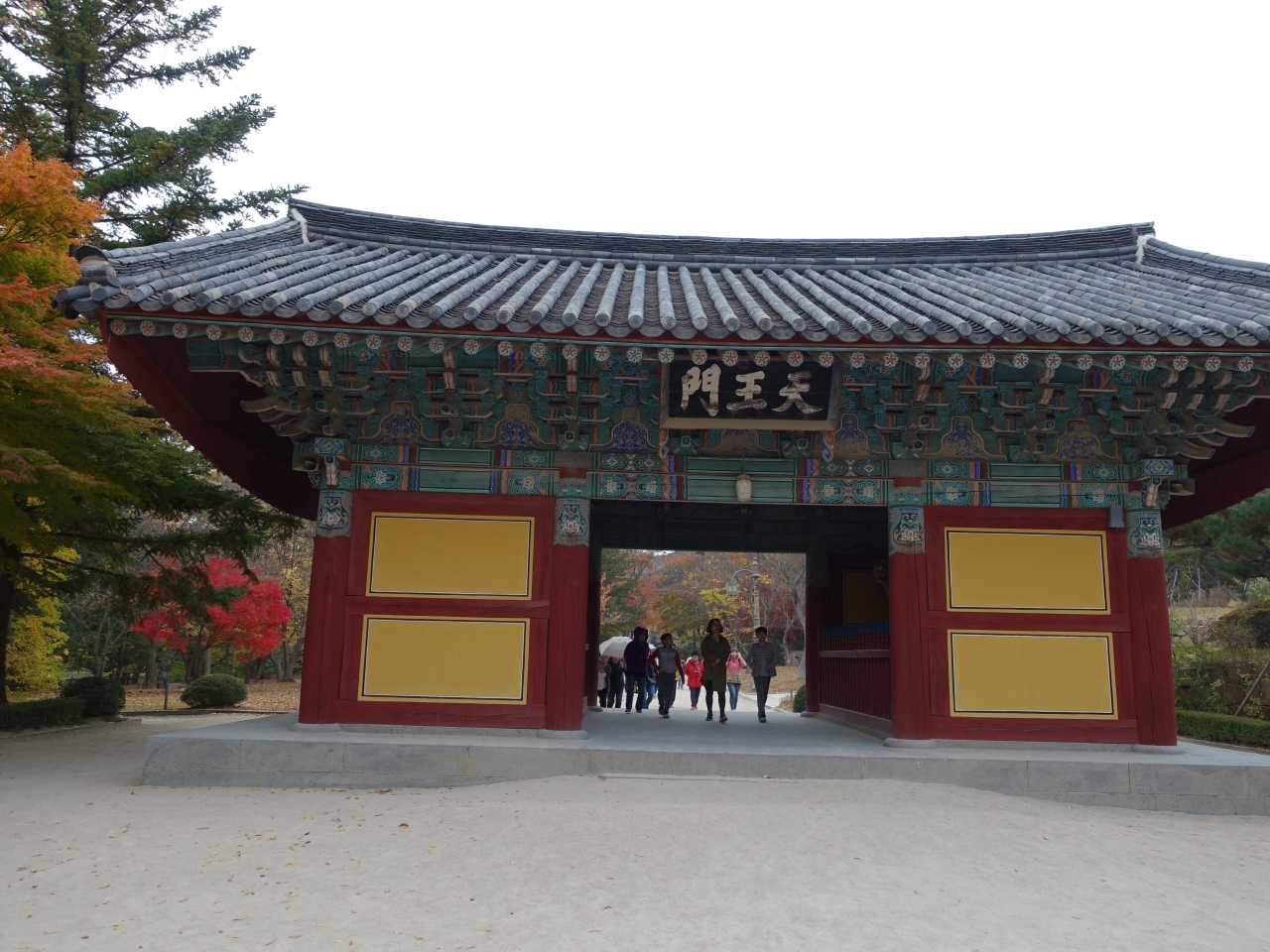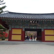 正門を通り、紅葉のきれいな解脱橋を渡ると、天王門が見えてきます。門の中には、色彩鮮やかな、四天王像が立っています。仏法を守護する四天王だそうで、色の鮮やかさや、様子が、日本の四天王とは違うところが多いなと思いました。