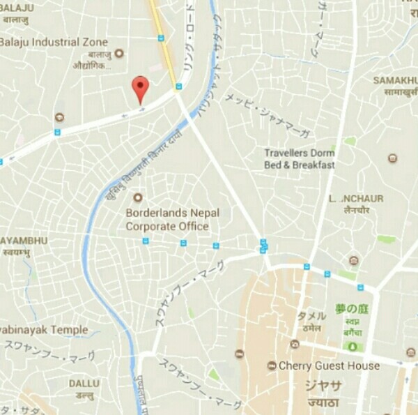 実際は7:40発でした。朝食、昼食、トイレ休憩の3回停車。カトマンズに近づくにつれて道路は大渋滞。バス、トラックが多すぎてこのショボい山道では完全にキャパオーバー。市内に入ってからも停まっている時間の方が長いくらいのひどい状況でした。で到着時刻は16:50の所要9時間10分。到着場所はタメル北西部のリングロード。写真を参照して下さい。すべてのバスかどうかはわかりませんが多くのバスがここに到着していました。タクシーがちゃんと待ち構えており多くの人は利用していましたがタメルまでなら約1.5km、道も分かりやすいので楽勝で歩けます。