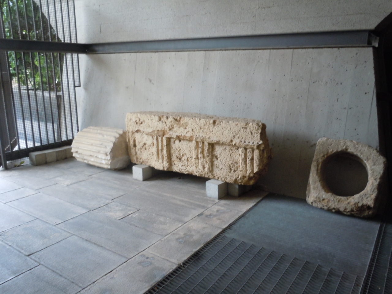 遺跡を残すため、劇場全体を持ち上げて建てたそうで、全体ちょっと薄暗い感じです。
