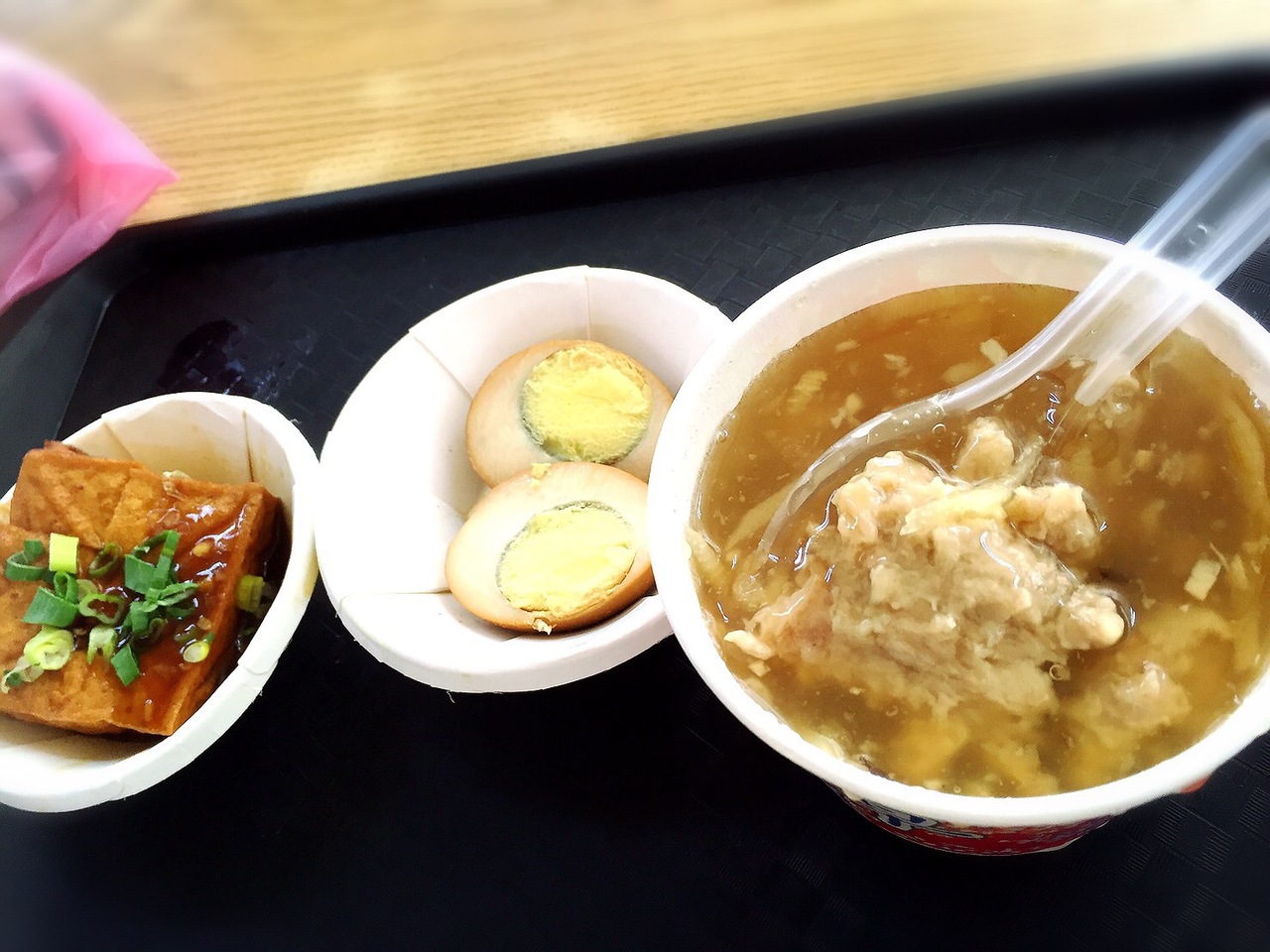冰讃が開店前だったので近くをウロウロしてて見つけました。ローカル食堂が大好きなので店構えを見て入ってみました。お客様はローカル100%注文は指差しで大丈夫。その場で熱々をよそってくれます。お肉のスープと茶葉蛋、厚揚げの煮込みみたいなのをオーダー。スープは甘みがあって美味しかったです。