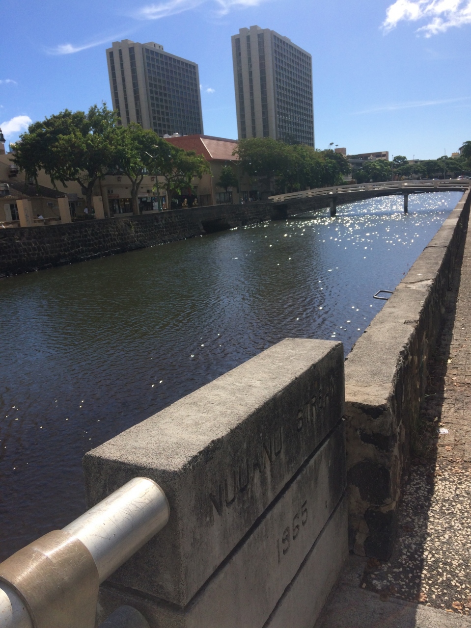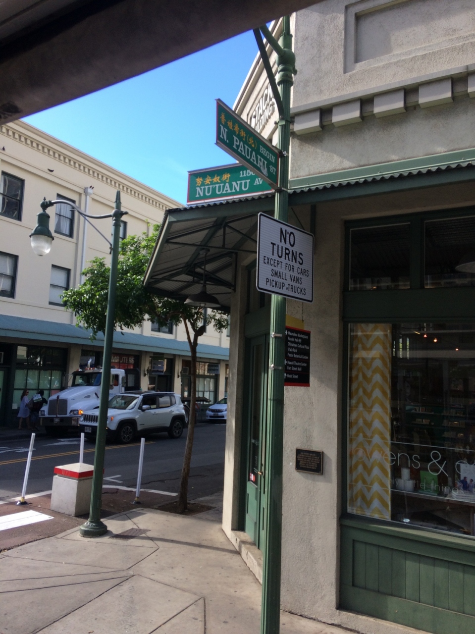 ヌアヌ川の近くにある小さなお店の外での朝ごはん。