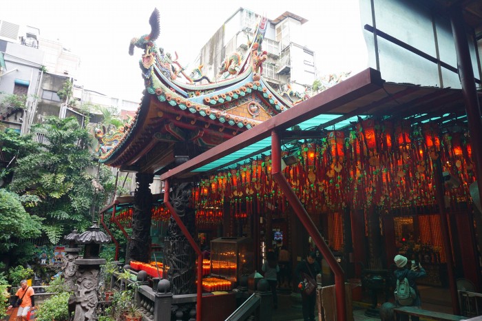 MRT西門站から100mほどと至近距離にあります。通りに面した山門は狭いので見逃しがちです。店舗一つ分のスペースしかありませんが、2階、3階にもいろんな神様が祀られていて参拝者が引きも切りません。龍山寺と違って観光客は少ないです。