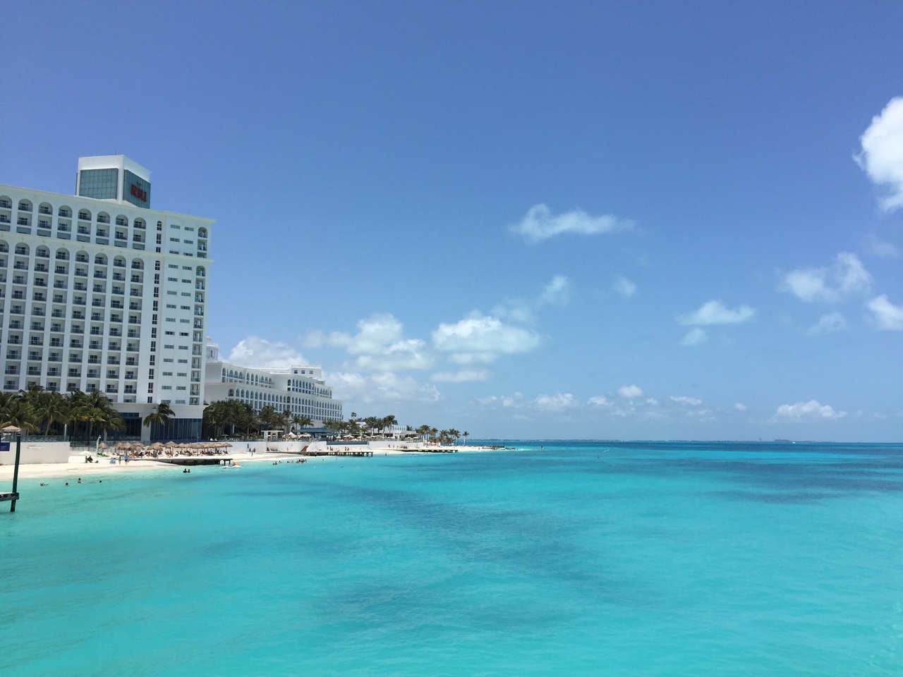 ホテルゾーンに到着して目に入ってきた海は驚くほどブルー!感動します!かき氷にブルーハワイがありますが、あの色です!少し乳白色がかった青は練乳を入れた様なかき氷の色です。こんな海を見れるなんて幸せです。真っ白な砂と青い海。素晴らしいです。フェリーでイスラムへレスへ行きましたがどこまでも続くブルーは圧巻です。