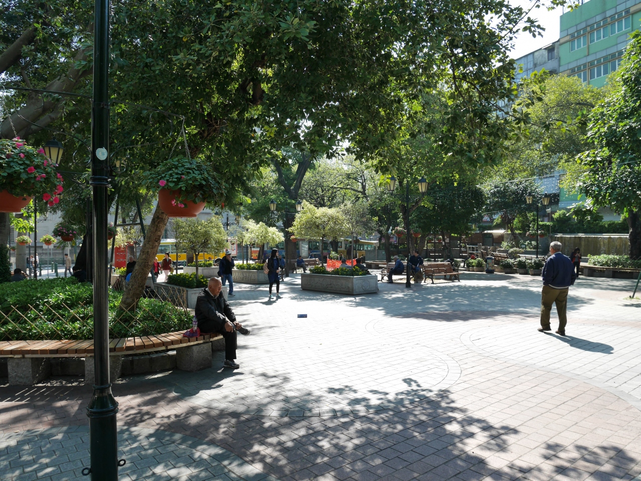 世界遺産でもあるカ-サ庭園のすぐ前にある広場です。すぐ隣には、広くて立派なルイス・カモンエス公園がありますが、2つは違うものです。そう大きくはないのですが、タイルが貼られ、樹木が生えていて、それを取り囲む世にベンチが置かれています。地元の人が多く、みんなのんびり過ごしていました。