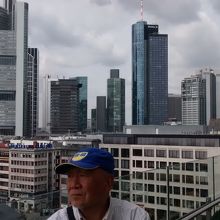 コメルツ銀行タワーは、ヨーロッパの金融の中心都市フランクフルトの高層ビル群の一つで、超近代的な建築様式が目を引きました。添付写真は、デパートのGaleria Kaufhof の最上階のレストランから眺めたものです。