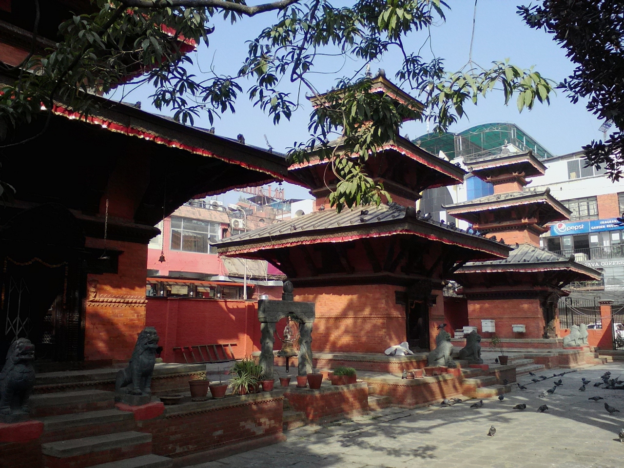 タメルチョークから西方向250mにあります。3つの屋根を持つ小さな寺院が3基並んでいます。朝方に訪れたらひっそり。地元の人がちらほらお参りに来ていました。家から持って来たのでしょうか境内にたくさんいるハト達にパンくずを与えていました。
