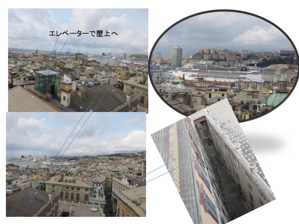 屋上からジェノバの街を360度のパノラマで見渡せます
