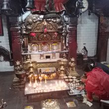 ダルバール広場とチェトラパティ・チョークを結ぶ通りとセトマチェンドラナート寺院から西に伸びる通りの交差点にあります。どちらの通りも狭く交通量も多いのでしばしば大渋滞が…。その様子を眺めていても結構楽しく時間が潰せます。肝心の寺院はいたって普通…ですが交通量のせいでしょうか全体がホコリまみれでかなり残念な状態になっています。