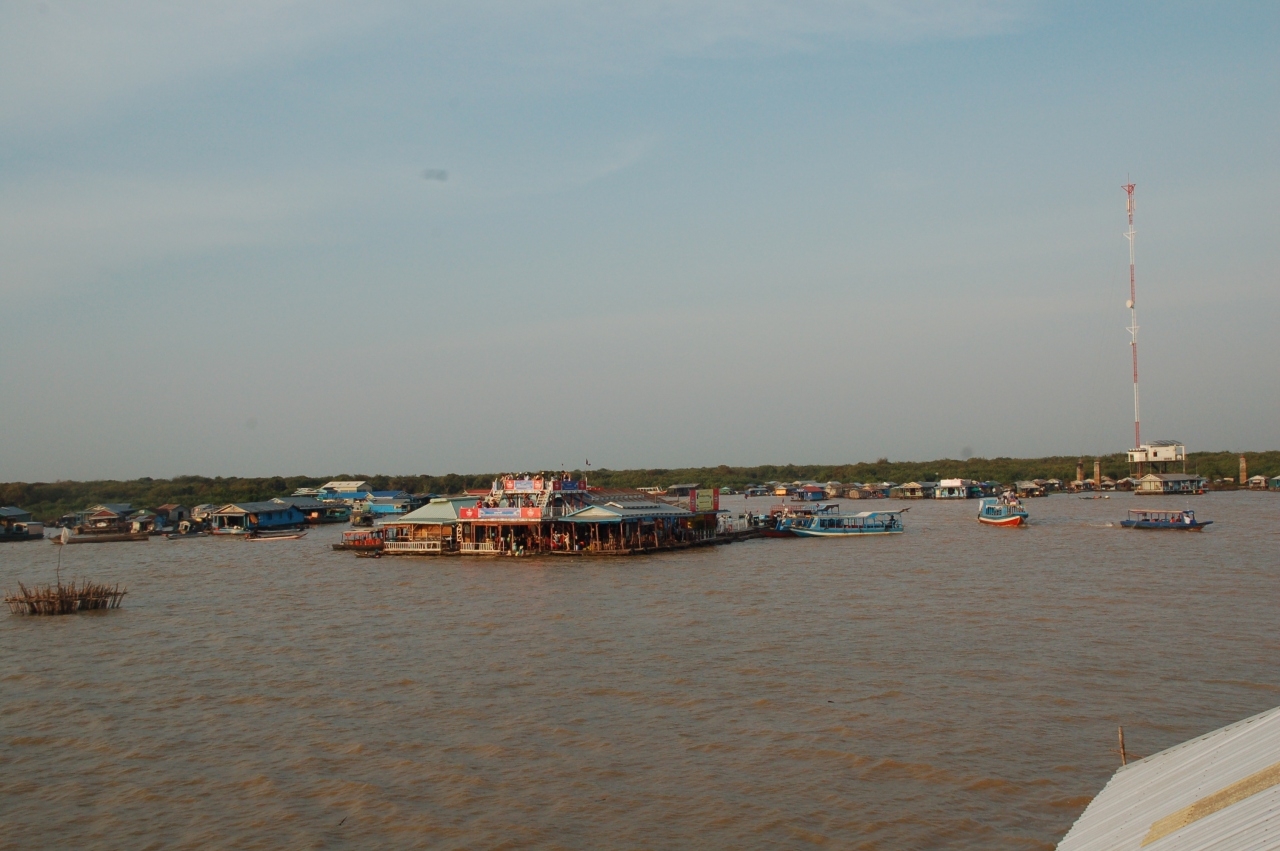 大きな湖で、水上生活の様子を見ることができます。一般の民家も、学校も病院もお店もすべて水の上に浮いた建物ですが、しっかり機能している様子でした。建物間の移動は船です。たらいに乗って漕いで移動している女の子もいました。