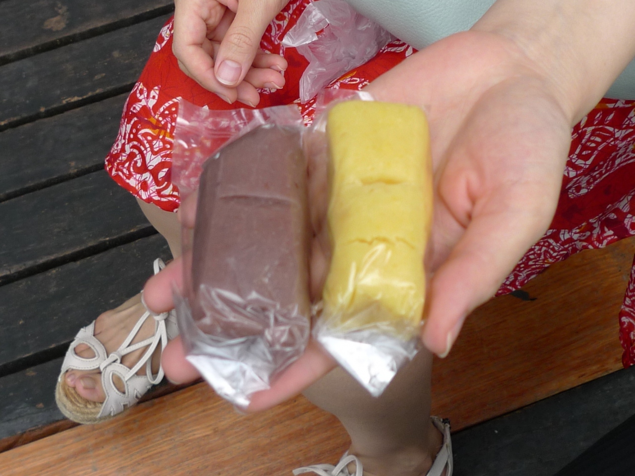 ビーンズ(小豆だと思う)とタロイモを蒸したお菓子。日本にも似たようなものがあったような気がした。どちらも癖がなく素朴な味で美味しかった。