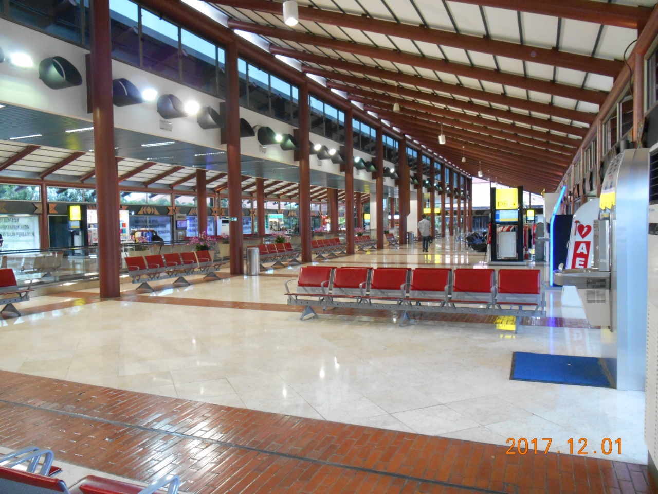 空港は古いのですが、搭乗用のロビーが庭園の中に点在し、景色の良い空港です。早朝のためか、空港移転の準備か分からないが、閉まっている免税店や工事中の店も見かけました。