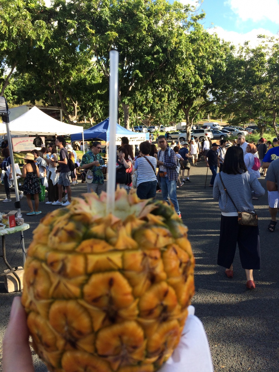 朝ごはんがてらウィンナーやあわび、ガーリックシュリンプなどを食べ、その後ダイアモンドヘッド登山をし、帰りに再度ファーマーズマーケットに寄りました。