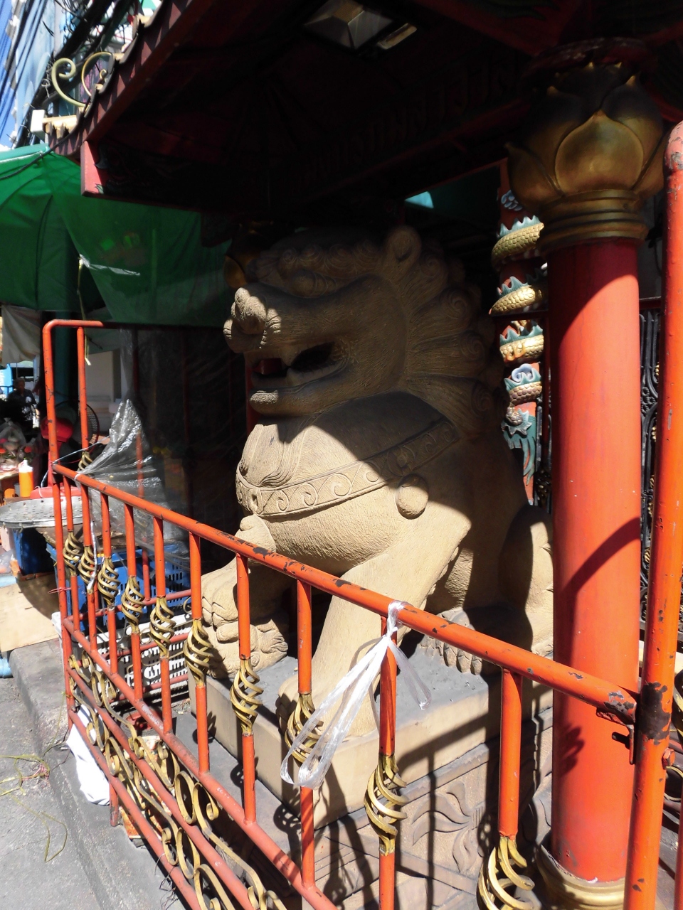 1871年に建立されたと言われる中国仏教寺院と道教の神が祀られているお寺です。チャルンクルン通りの門はそれほど広くなかったですが、そこをスレスレで車が出入りしていました。中は駐車場にもなっており、お寺自体は小さい感じでした。内部には中国三大神が祀られています。平日の昼前でしたが、多くの方がお参りされていました。