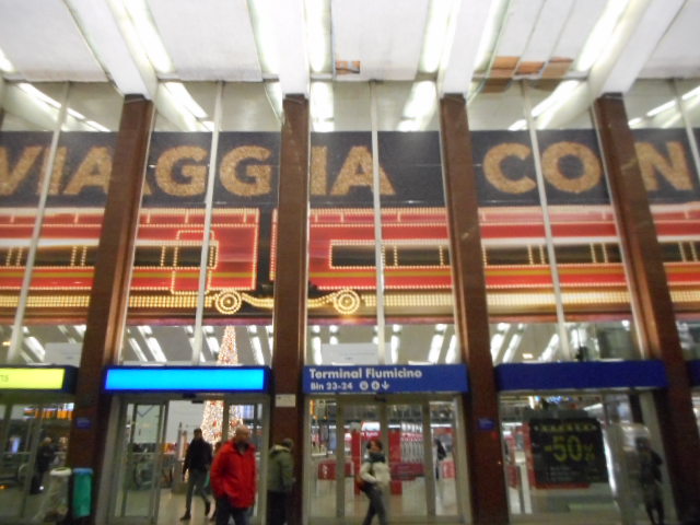 ローマの玄関口のテルミニ駅はムッソリーニが建てさせたと聞いていますが、広い駅舎でショツピング、飲食街も多く、世界各国からの観光客で溢れています。駅構内にはクリスマスツリーが飾られて、多くの人々が各自、書き込んだメモをそのツリーに張り付けていました。