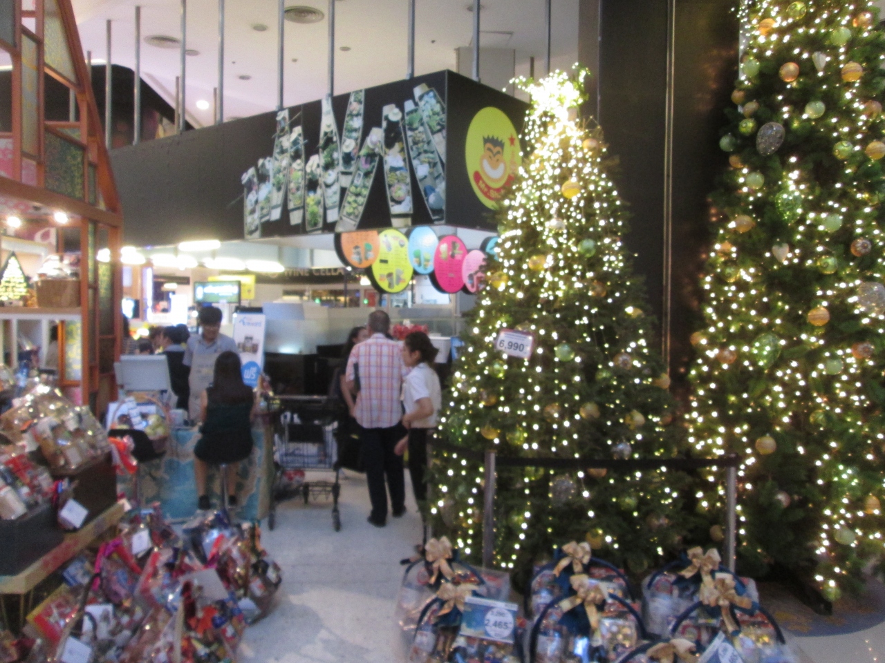 クリスマスイヴにセントラルフードホールに訪問しました。昨年のクリスマスはプミポン国王逝去直後のため自粛モードでしたが、10月末で喪が明け、2017年のセントラルフードホールはクリスマスモード全開でした。店内でしたが、電力消費を気にすることなく豪華なイルミネーションを提供してくれていたのが印象的でした。