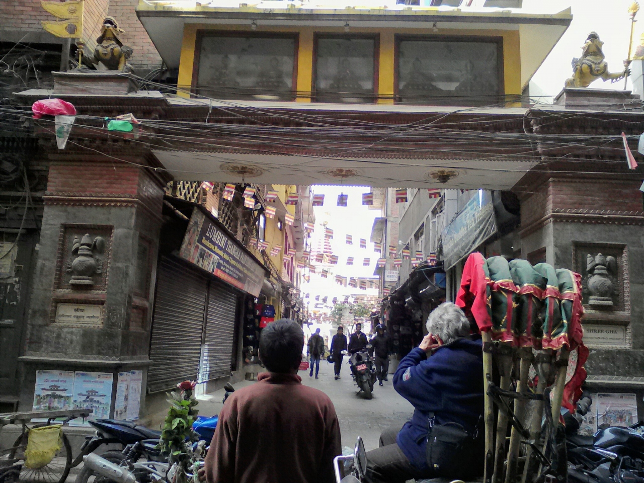 タヒティチョークの南西すぐそばにあります。タヒティチョークからインドラチョークへ50mほど南下すると正面入口があります。中は意外なほどの広々空間、で、これまた意外なほどの大きなストゥーパがあります。観光客が少ないかわりにいるのは周辺の住民でしょうか、日向ぼっこエリアになっています。