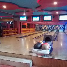 ややセンスに欠けますが外見はまあよしとしましょう。内部は最先端ショッピングモールを目指したのでしょうが残念ながら“風”にとどまっています。垢抜けてない感が半端なくツッコミどころ満載です。まず暗い!電力不足?エスカレーターの建付けが悪い!パコパコいってます。店の前で火を燃やすな!宗教的なものかもしれませんがこれはアウト。探せばもっといろいろあると思います。で、6F(7階)には一応フードコート、7Fにはわけのわからない映画館(450Rs)と4レーンのボーリング場(1ゲーム200Rs,貸靴無料)があります。どれもショボショボですが…。